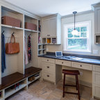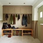Entry built-in bench with storage below for shoes, hooks above for coats