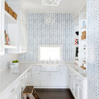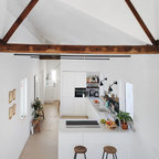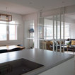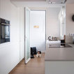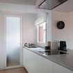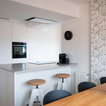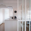 Y como detalle, incluimos un pequeño cuarto al fondo de la cocina, con espacio para lavadora y secadora. Una idea muy útil para dividir estancias.