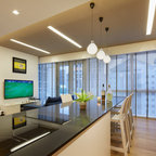 By reimagining the spatial hierarchy of a typical Singaporean home, the existing living room was converted nto a guest room, 2 bedrooms were also transformed into a single living space centered in the heart of the apartment.