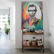 This is NOT the art I would suggest, but wanted to show you a bar cart with a large piece of art over it. I would want a more substantial cart too.
