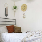 Vintage Arc Lamp in Bedroom with Pink Accents