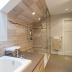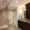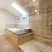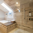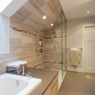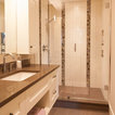 has the wood-look planning on the shower wall