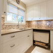 white molding/door with dark cabinets