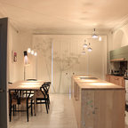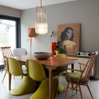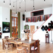 INDOORS1. Perfect your space with pendantsIf you are not especially ostentatious and your style and mood is more funky and chic, choose a light fitting that suits the style of your space. This converted school house picked up the relaxed atmosphere of this cool kitchen with three simple, coloured pendants. They work well because the colours match those found elsewhere in the space. The ambience created is one of fun, albeit slightly industrial – but most of all it’s a very modern look.More kitchen pendant lighting ideas