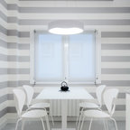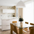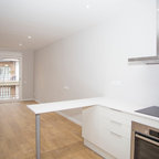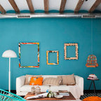 No ha sido tan solo pintura, sino texturas, mobiliario, y el constante movimiento de los que habitan este piso del Eixample barcelonés lo que se ha querido situar sobre un fondo blanco profundo y habitable que se abre hacia los raudales de luz que entran por las ventanas. Un vacío acogedor, funcionalmente resuelto para albergar y dar protagonismo a una pequeña pero interesante colección de piezas de mobiliario, arte y literatura curada por los jóvenes propietarios: Un diseñador industrial y una profesora de idiomas. Lo más valioso que han conseguido entre los dos, no son sin embargo, las reproducciones originales que cuelgan sobre las paredes, ni los clásicos contemporáneos del diseño industrial que salpican la monocromática amplitud del los espacios recién integrados, sino Joaquim, hijo de ambos, que con apenas 4 años ha conseguido colonizar todas las estancias de la casa con un montón de trastos seguramente menos costosos pero mucho más coloridos, resistentes y divertidos.