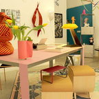Zona de estudio en la terraza del salón. Luz y color, ambiente desenfadado