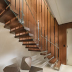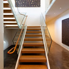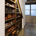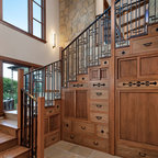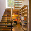 library and reading area build into and under stairway.