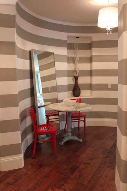 5 Horizontal Lines: While having the horizontal lines painted onto the walls, make the room feel like it is continuing hallway.