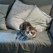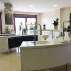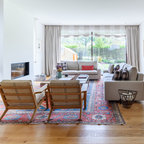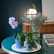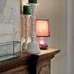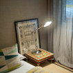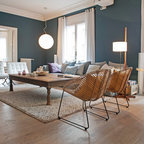 Como suelen vender piezas de la casa a los clientes, confiesan no tener demasiado apego por el mobiliario. Sin embargo, esta mesa de centro india restaurada “no la venderían por nada del mundo”:“Somos mentes creativas y necesitamos cambiar a menudo nuestro entorno; tener mucho tiempo un cuadro quizá puede llegar a condicionar demasiado el espacio, por ello las obras de arte que vamos teniendo o se venden o se reubican”, dice ella. Los cuadros aquí son todos de Sol Fábrega, amiga de la pareja.Lámpara de sobremesa Cesta, de Miguel Milá. Del mismo autor, la luminaria de pie TMM