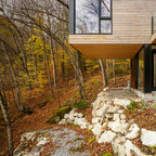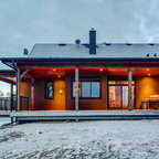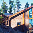 An exterior shot of the 900 sq.ft. Japanesque style studio with a green roof.