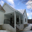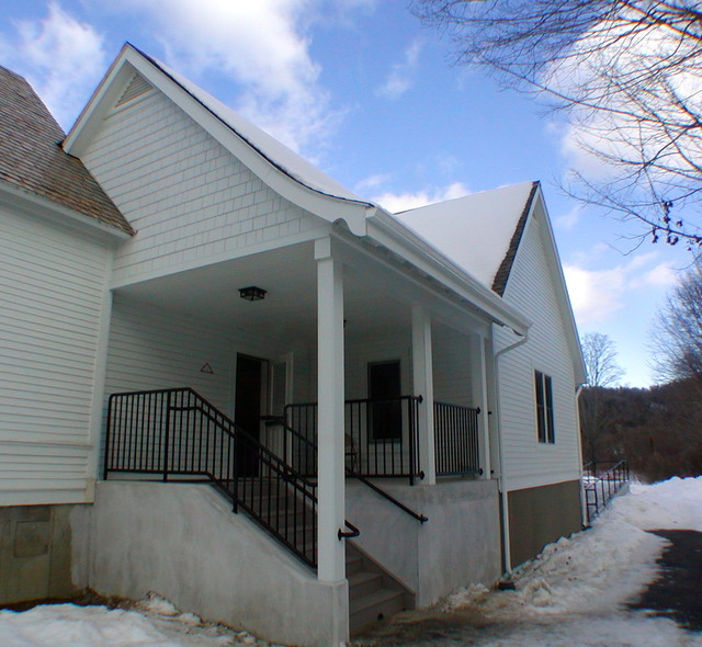 New construction abutting the existing church. The budget allowed one small design flair which we put in the curve of the entry porch roof. The handicap ramp was required by flood zone officials to be placed in the back. Designed in collaboration with Kate Johnson of Responsive Designs.