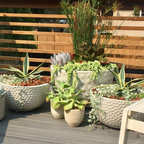 Coulson opted for the soil and planting approach, as shown in this photo. He began by installing a two-ply roofing membrane that was torched down instead of nailed. Then came a dimpled drainage layer and an industrial filter cloth. Next came a 6-inch layer of a pumice, sand and humus soil mix.Tip: Be sure to include a draining layer — as Coulson did with his dimpled drainage — above your membrane and below your topsoil.