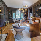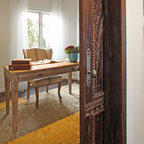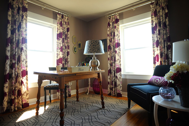 Decorator show house home office design. Room inspired by the draperies. Design by April Force Pardoe Interiors, Elkridge, MD. Photo by Photos by Heather Owens.