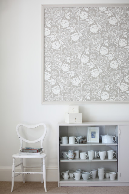 Peony wallpaper mounted in frame.