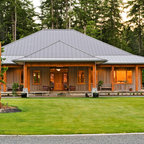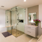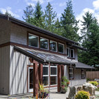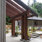 Instead of pergola that might darken interior, this glass exterior roof is good alternative