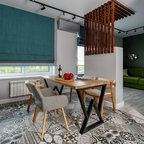 "На стену, разделяющую зону кухни и гостиной, повесили белые полки ИКЕА"