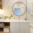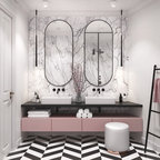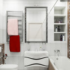 серый.освещение в ванной. рабочее место в спальне