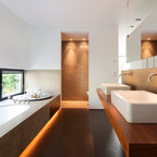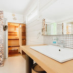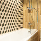 Бортик ванны отделали влагостойкими панелями из экзотической породы африканского дерева денья. Рога — чисто декоративные, при желании на них можно что-нибудь повесить — например, мочалку. Декоративные рога: Kare Design