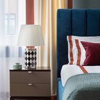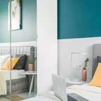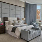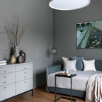 Hög och stoppad Huvudgavel i samma färg som väggen för lugnt intryck att kunna luta sig emot helt och hållet