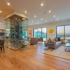 This contemporary full home renovation and addition features updates to the kitchen, great room, pool room, office, and basement. The patio was extended and a barbeque was added.