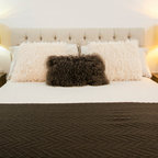 Combinación de colores y cobija doblada ala mitad de la cama.