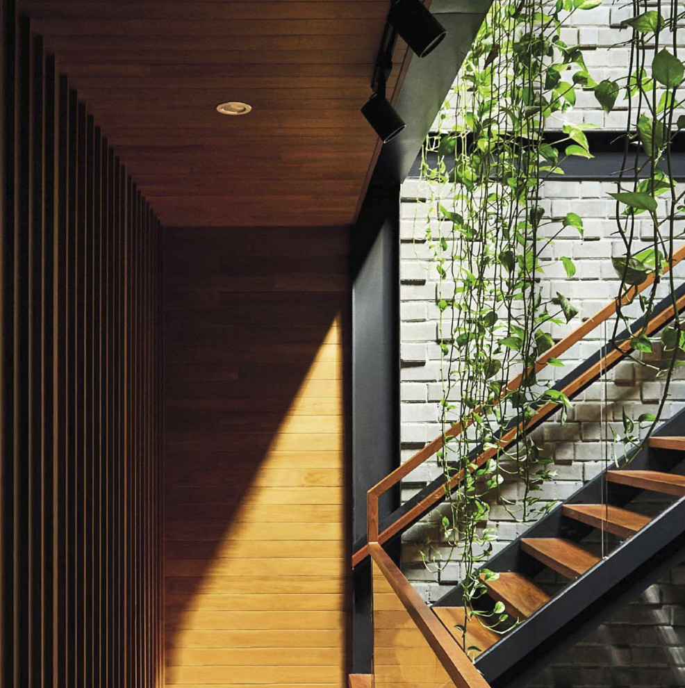 The centre of the length of the terrace house is the most noteworthy – a lightwell that breaks through the solid roof to bring natural lighting into the 3 volume space. This high volume space is thus designed to cater for social gatherings to take place. Hence the programme for such social gathering is the dinning space, where the owners can host their guests. Visual connectivity is extended from the ground floor to the 3rd floor and beyond due to the common space revolving around this lightwell. As a result of this lightwell, greenery was also infused to bring the inhabitant closer to nature.