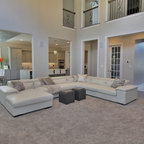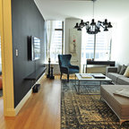 A transitional interior with an Art Deco touch: a glamorous attitude and insouciant flair created with soft contemporary furnishings.