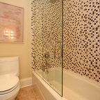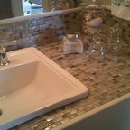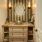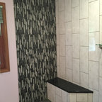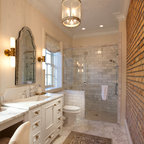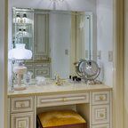 We utilized a Moroccan inspired mirror to accentuate and play with the unusual slanted roof line. By adding clean lines and ample drawers for storage, we were able to transform this outdated bathroom into a true modern master retreat.