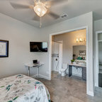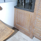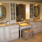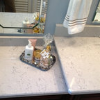 We utilized a Moroccan inspired mirror to accentuate and play with the unusual slanted roof line. By adding clean lines and ample drawers for storage, we were able to transform this outdated bathroom into a true modern master retreat.
