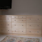 Antiqued mirror fronts on built in cabinets. Attic remodel