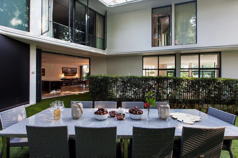 Alfresco dining allows the family to enjoy the pool as well as the stunning view of their home.