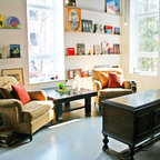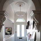 1. A bold entranceSydney, AustraliaANNA CARIN DesignA collection of black and white photographs casually propped on the picture ledge, a bright yellow front door and a medley of unusual decor items make for a delightful entryway vignette.Find a local designer to help you with your renovation