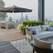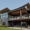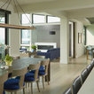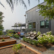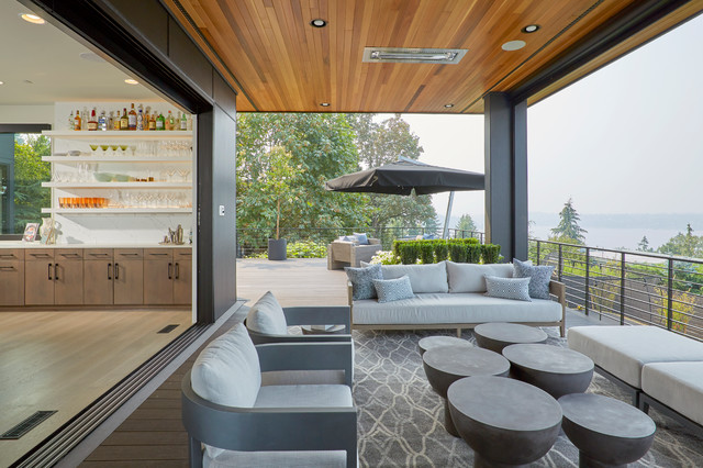 The black sliding doors can be completely open to create the perfect indoor-outdoor living experience.