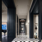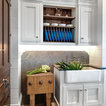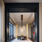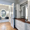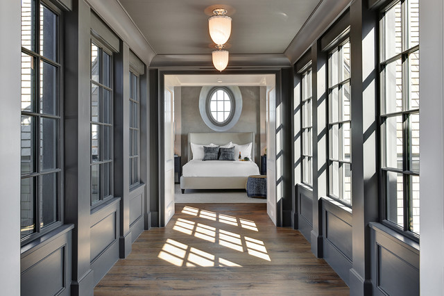 Photography: William Quarles Photography/ Architecture: Anderson Studio of Architecture & Design/ Decorative Lighting: Visual Comfort sourced through Ferguson Enterprises/ Bed: Bernhardt, custom fabric/Ottoman: Made Goods/ Nightstands: custom finished in Benjamin Moore Gentleman's Gray/ Rug: Designer Carpets/ Walls: Plaster & Shiplap