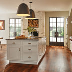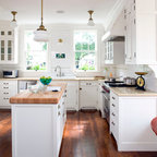 LOVE the island and wood floors with the white kitchen