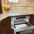 This picture is really close to what we are doing. Just add the dark pantry and fridge cabinets on both sides. All the colors are close and consistent with what we discussed.
