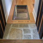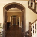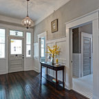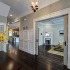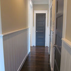 Interior walls and doors are Sherwin Williams Mindful Gray the front door is sherwin williams hazel and the interior doors are sherwin williams mindful gray