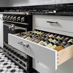 The drawer above the wine storage is the perfect place for corkscrew, bottle stoppers, wineglass charms, and other accouterments.