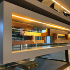 The stairs (the open concept, color, the wiring), the flooring, the wall lighting....very contemporary modern!