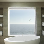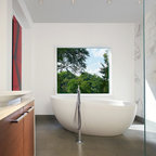 Make much of a viewOf course, few of us live surrounded by peaceful woodland or are able to install a giant picture window by our tub, but this lovely image illustrates the value of inviting the outside in. Making the most of any green view, if you can do so without compromising privacy, will help a bathroom feel connected to the outdoors and more inviting.