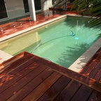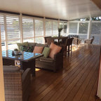 Outdoor decking with timbers running across the view, compared to previous pic which has them running out to view, which is best?