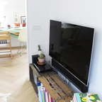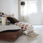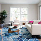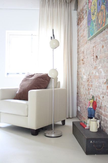 This concrete floor was acid etched and then painted with a low-sheen paint, creating a matte look, and a topcoat was not used.