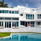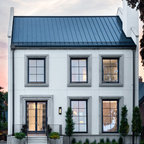 Exterior Decks and windows: wrap around deck materials for first and second level wrap around decks cedar horizontal plank large seamless windows with low profile wood casing large open folding door (grey steel) Roof: grey standing seam metal roof
