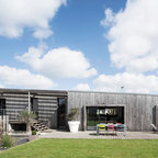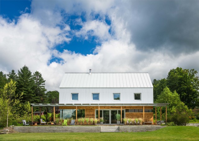 modern farmhouse, wood siding wrap around deck