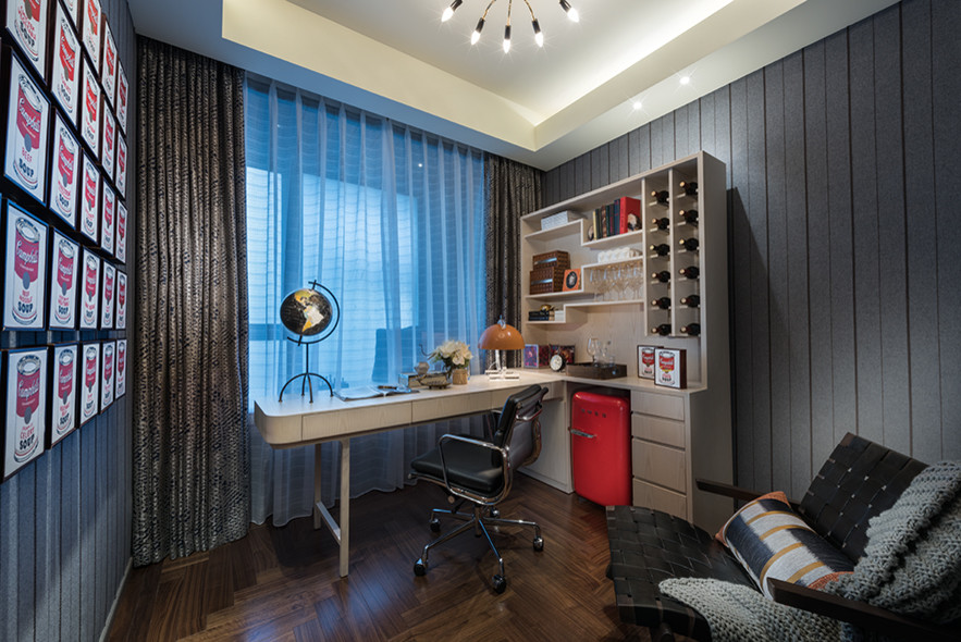 Not just a workstation, this room pulls double duty as a recreation space. Facilitating the lounge function of the room...