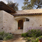 Roof material, windows and doors, smooth cream stucco and texas limestone