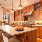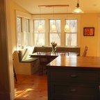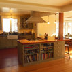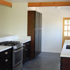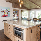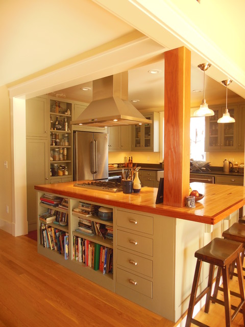 defined space yet still open wood over white L-shape get rid of cooktop and hood
