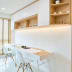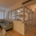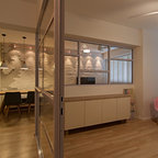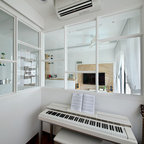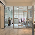 3. Location: SingaporeDesigner: Mr Shopper StudioFeatures: A minimal desk hidden behind a pony wall surrounded by glass walls.