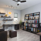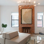 This has a lot going for it...it is clearly way longer than what I have to work with. I like the potential for the lofted bed area to be sitting over the existing bathroom to add space. The staircase can be more of a ladder or spiral staircase than this long clunky thing. The floors here are concrete and windows high. I hate the lighting, though.