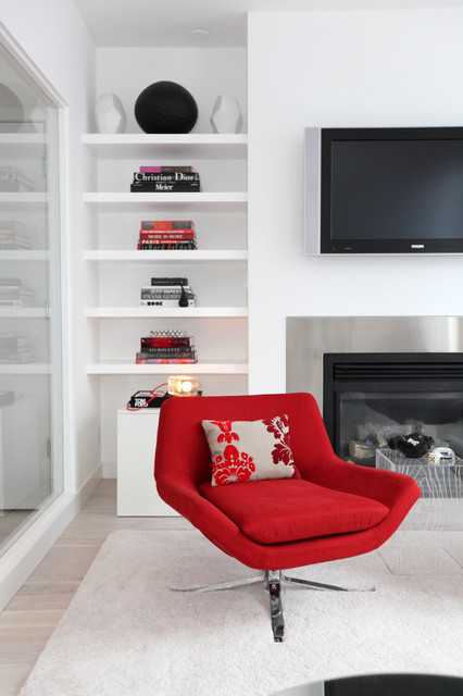 in the living room you can have a fun red accent chair!